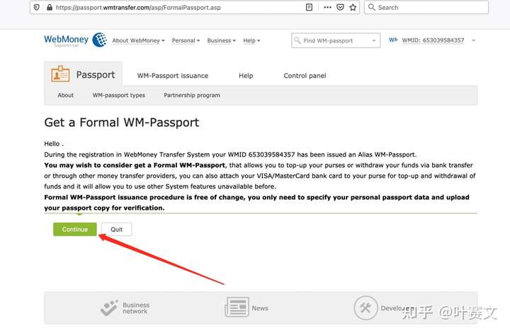 我们将webmoney账号升级为正式护照(Formal passport)
